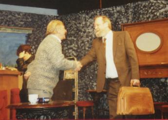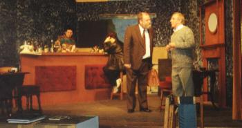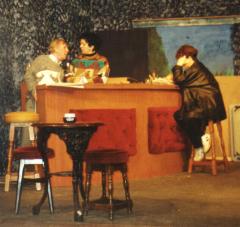 The play was a competition piece which was entered in... The Avon Association One Act Drama Festival at Chipping Sodbury Town Hall on 18th February (receiving a Grade A marking), the All England One Act Festival at the Redgrave Theatre Bristol on 25th February and the Malmesbury One Act Festival (winning the Allen Peacock Trophy for the Best Original Play) in mid March. In Addition to being the first ever performance of the play, this was the first production at the newly refurbished Iron Acton Parish Hall, and indeed the first Actonians performance this century! The Trackman Cometh: In the seen-better-days Diamente Lounge, things are not necessarily as they seem. If facades invite assumptions and assumptions are commodities, the sixty four thousand Euro questions are - who's selling and who's buying?