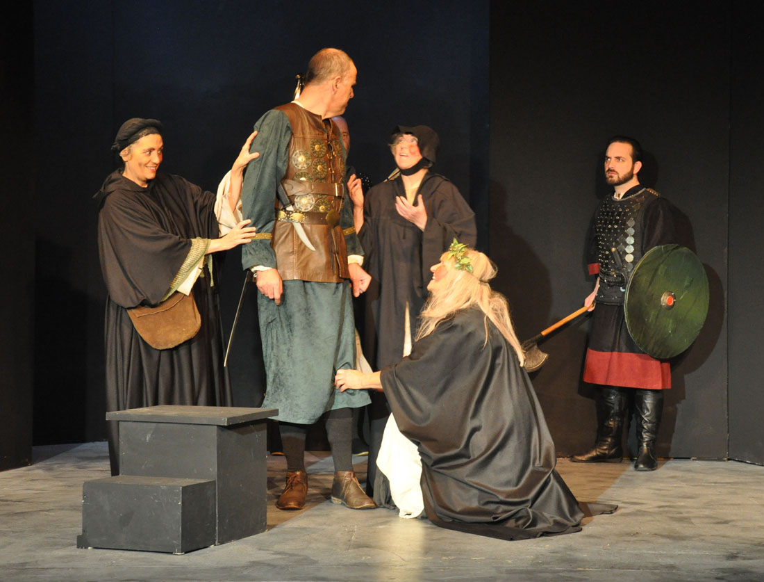 A Scottish soldier (Macbeth) and his friend (Banquo) are met by three strange witches bearing prophetic greetings. Macbeth is told that, among other titles, he will become king. The rest of the play follows a once loyal soldier (Macbeth) into the depths of darkness and despair as he seeks the crown regardless of the consequences.