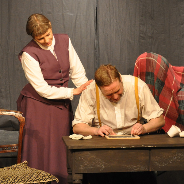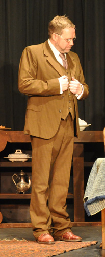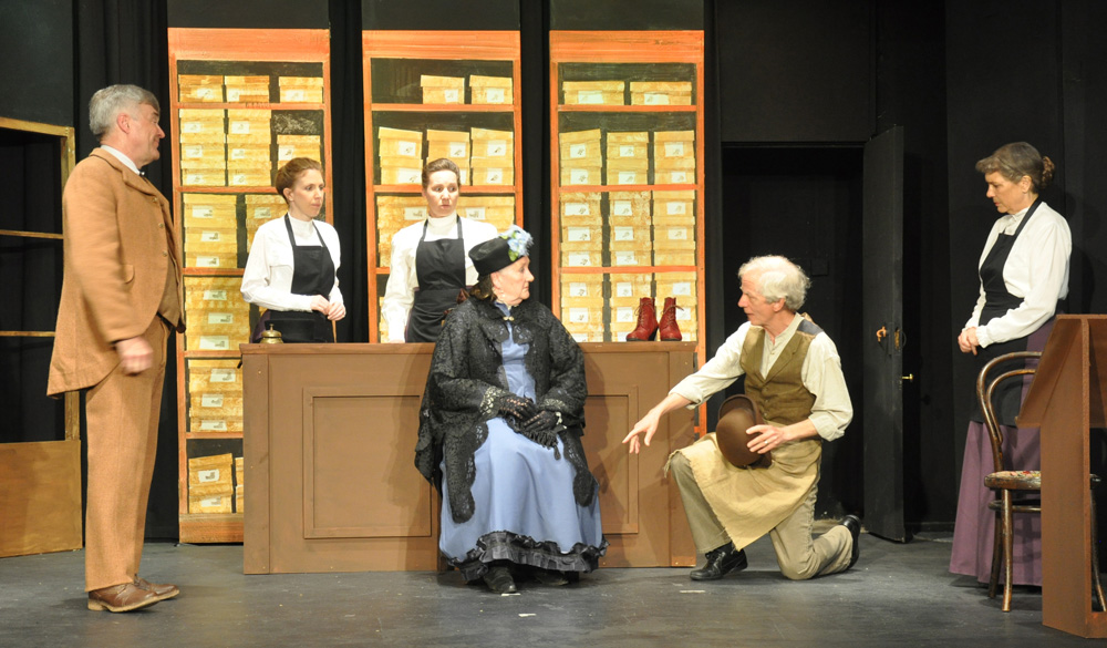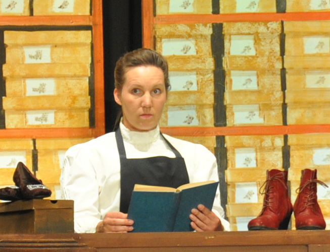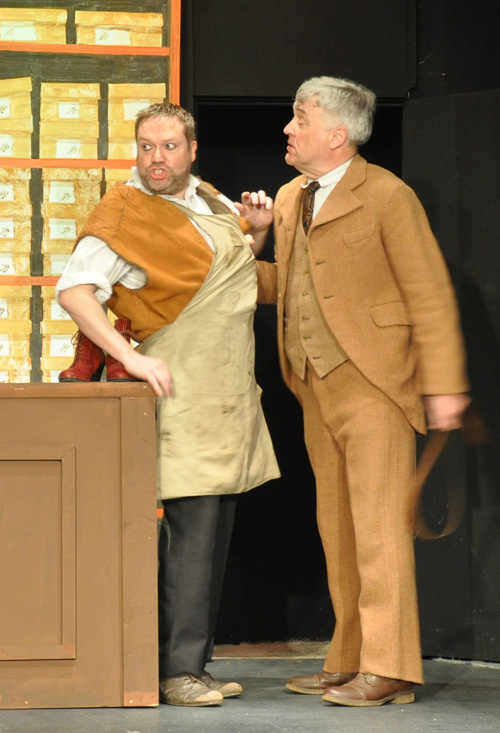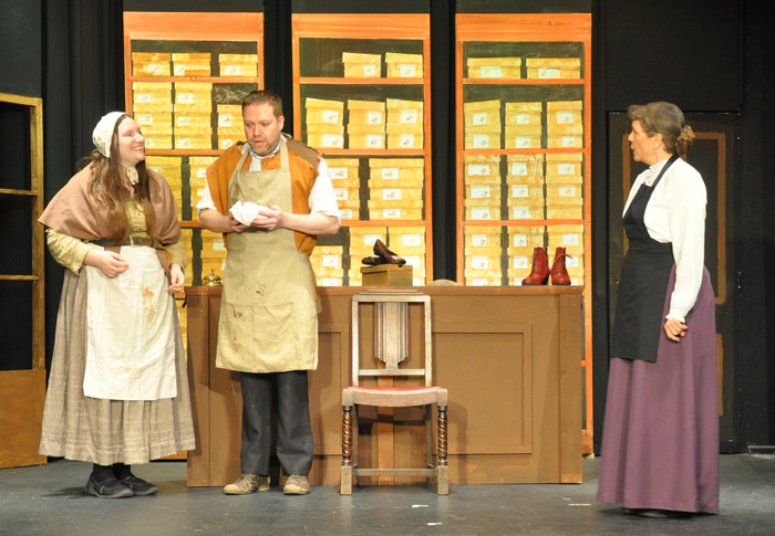30ish. The bootmaker. Shy, and mentally stunted, nervous to begin with, later asserts his authority.